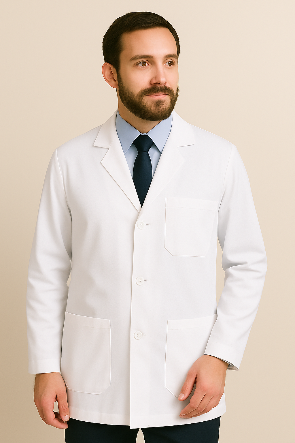 O jaleco é confeccionado em tecido leve, resistente e de toque suave, ideal para a rotina intensa de profissionais da saúde. Com modelagem reta e caimento confortável, oferece total liberdade de movimentos durante procedimentos e plantões.