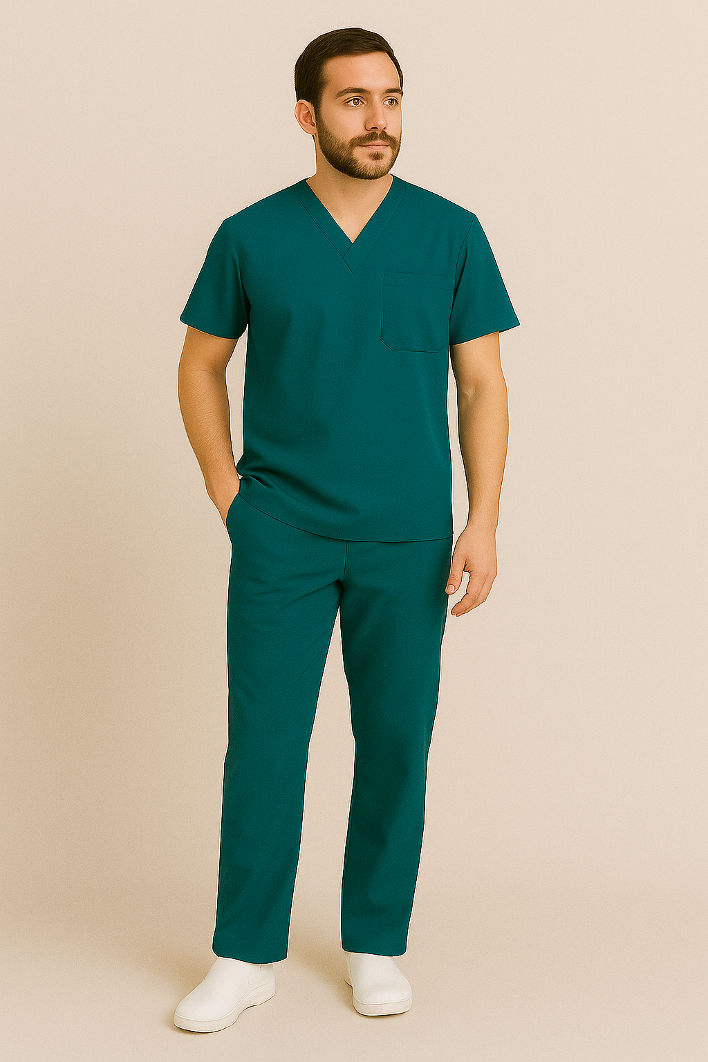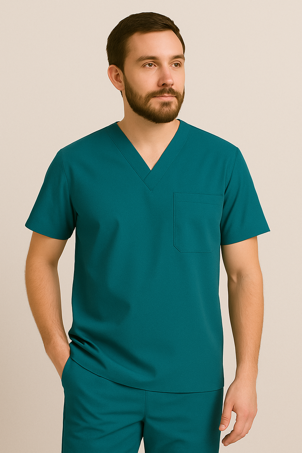 O conjunto pijama cirúrgico masculino é confeccionado em tecido leve, resistente e de toque suave, ideal para a rotina intensa de profissionais da saúde. Com modelagem reta e caimento confortável, oferece total liberdade de movimentos durante procedimentos e plantões.